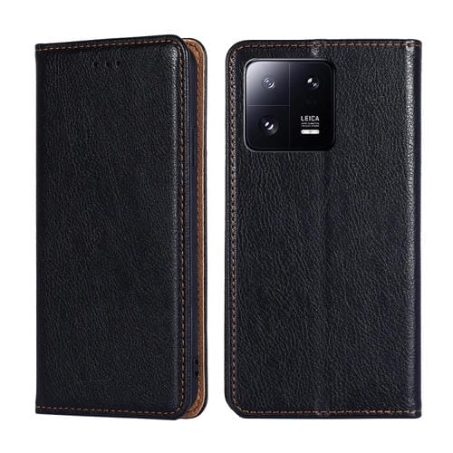 Para Xiaomi 13 Pro Estuche para Teléfono de Cuero Magnético de Color Sólido con Aceite Brillante (Negro)