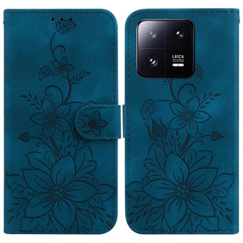 Para Xiaomi 13 Pro Lily Funda de Cuero En Relieve para Teléfono (Azul Oscuro)