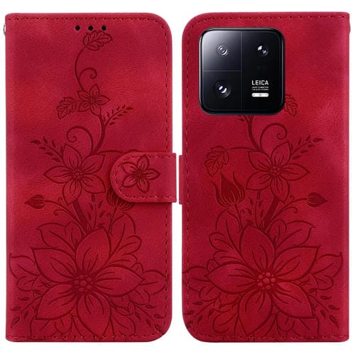 Para Xiaomi 13 Pro Lily Funda de Cuero En Relieve para Teléfono (Rojo)