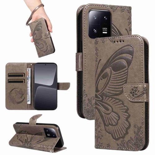 Para Xiaomi 13 Pro Swallowtail Butterfly Funda de Cuero En Relieve para Teléfono (Gris)