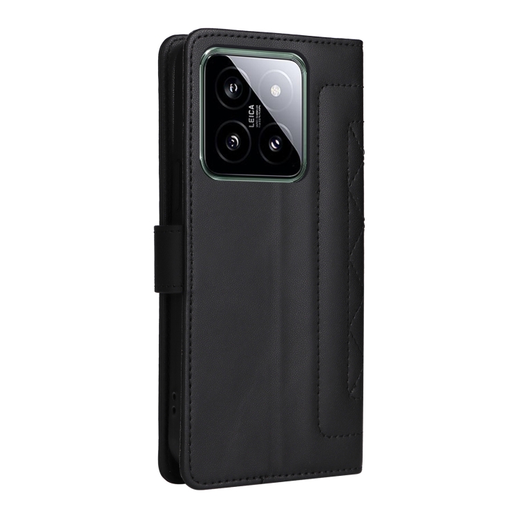 Para Xiaomi 14 5G Diamond Lattice Funda De Cuero Con Tapa Para Teléfono (Negro)