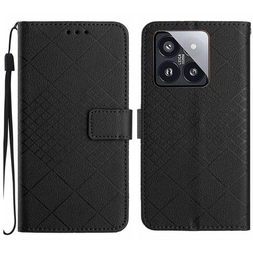 Para Xiaomi 14 Funda De Cuero Con Textura De Rejilla Rómbica (Negro)
