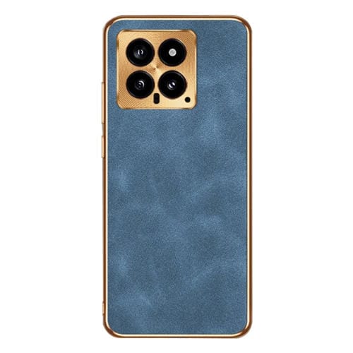 Para Xiaomi 14 Funda De Cuero De Piel De Cordero Galvanizada (Azul)