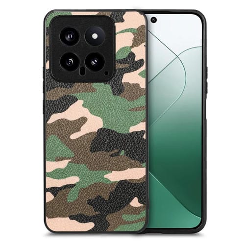 Para Xiaomi 14 Funda Trasera De Cuero De Camuflaje Retro (Verde)