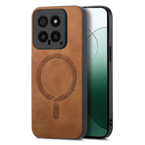 Para Xiaomi 14 Pro 5G Color Sólido Retro Magsafe Pu Funda Para Teléfono Con Contraportada (Marrón)