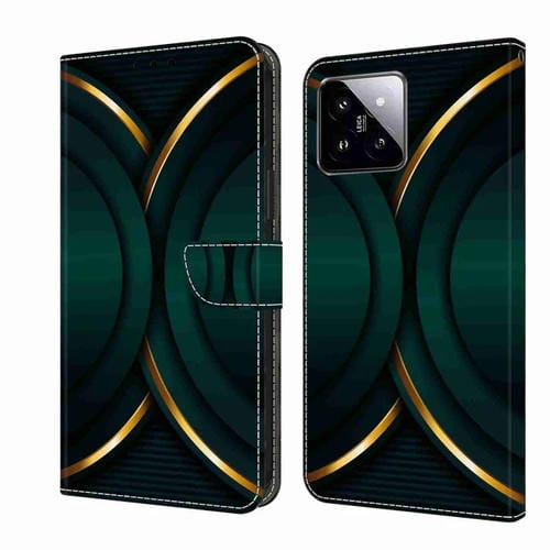 Para Xiaomi 14 Pro Crystal 3D Funda Protectora De Cuero Para Teléfono A Prueba De Golpes (Contorno Dorado)