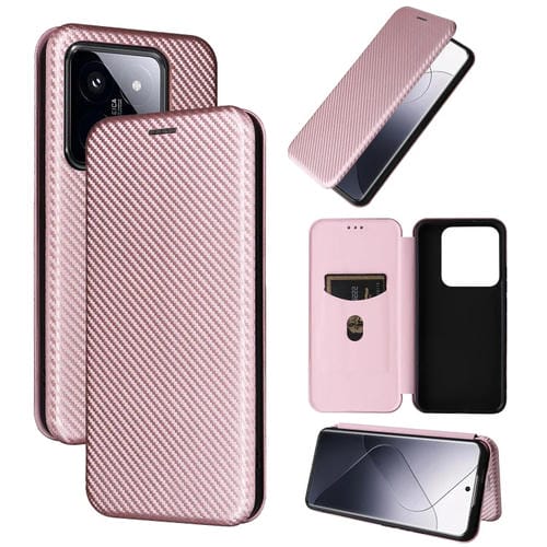 Para Xiaomi 14 Pro Funda De Teléfono De Cuero Con Tapa Con Textura De Fibra De Carbono (Rosa)