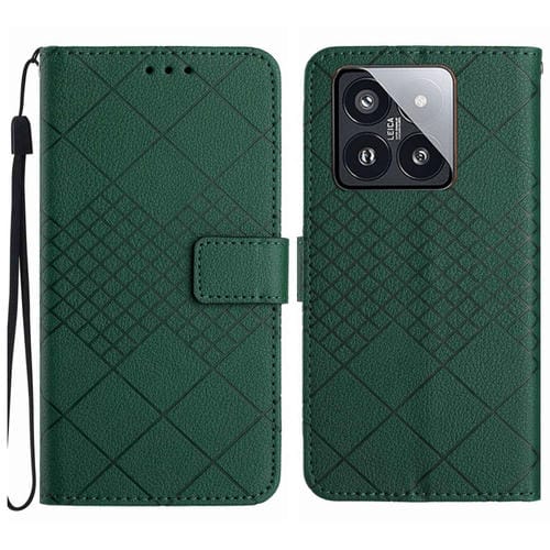 Para Xiaomi 14 Pro Funda De Teléfono De Cuero Con Textura De Rejilla Rómbica (Verde)