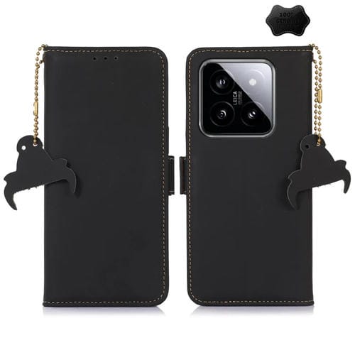 Para Xiaomi 14 Pro Funda De Teléfono De Cuero Rfid Magnética De Cuero Genuino (Negro)