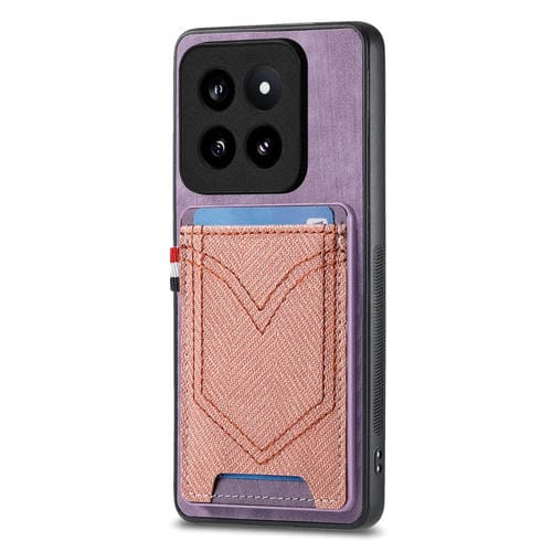 Para Xiaomi 14 Pro Funda Para Teléfono Con Piel De Cuero Con Textura Vaquera Y Ranura Para Tarjeta (Púrpura)