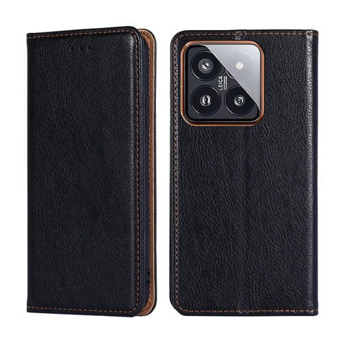 Para Xiaomi 14 Pro Gloss Oil Color Sólido Funda De Teléfono De Cuero Magnético (Negro)