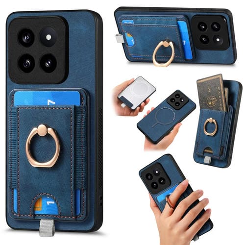 Para Xiaomi 14 Pro Retro Splitable Magnetic Card Bag Funda De Cuero Para Teléfono (Azul)