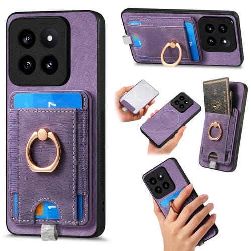 Para Xiaomi 14 Pro Retro Splitable Magnetic Card Bag Funda De Cuero Para Teléfono (Púrpura)