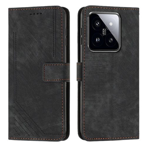 Para Xiaomi 14 Pro Skin Feel Funda De Cuero Con Patrón De Rayas Y Cordón Largo (Negro)