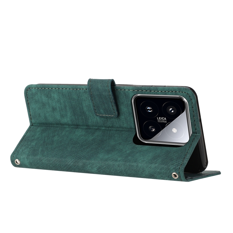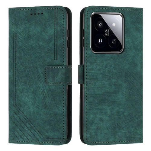 Para Xiaomi 14 Pro Skin Feel Funda De Cuero Para Teléfono Con Patrón De Rayas Y Cordón Largo (Verde)