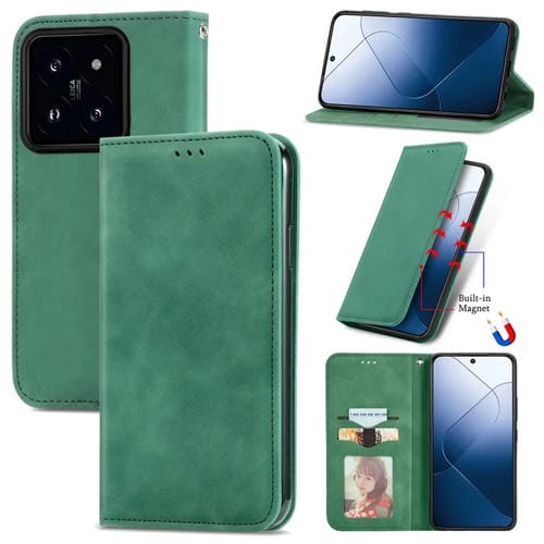 Para Xiaomi 14 Retro Skin Feel Funda De Teléfono De Cuero Con Tapa Magnética (Verde)
