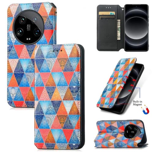 Para Xiaomi 14 Ultra Caseneo Funda De Cuero Magnética Colorida Para Teléfono (Rhombus Mandala)