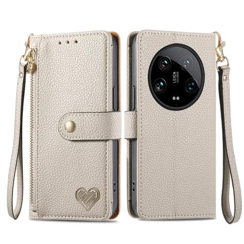 Para Xiaomi 14 Ultra Love Zipper Lanyard Funda De Cuero Para Teléfono (Gris)
