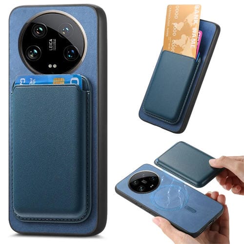 Para Xiaomi 14 Ultra Retro Magsafe Card Bag Pu Funda Para Teléfono Con Contraportada (Azul)