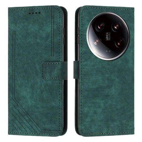 Para Xiaomi 14 Ultra Skin Feel Funda De Cuero Con Patrón De Rayas Y Cordón Largo (Verde)
