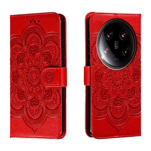 Para Xiaomi 14 Ultra Sun Mandala Funda De Cuero Para Teléfono Con Patrón En Relieve (Rojo)