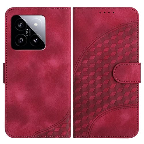 Para Xiaomi 14 Yx0060 Funda De Cuero Para Teléfono Con Relieve Y Cabeza De Elefante Con Cordón (Rojo Rosa)
