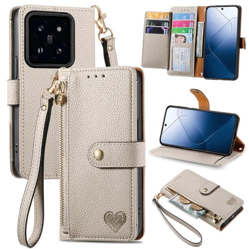 Para Xiaomi 14Pro Love Zipper Lanyard Funda De Cuero Para Teléfono (Blanco)