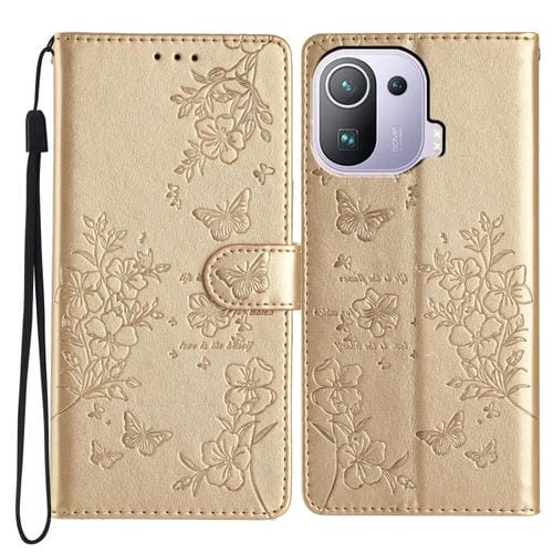 Para Xiaomi Mi 11 Pro Funda de Cuero para Teléfono con Mariposas y Flores (Dorado)