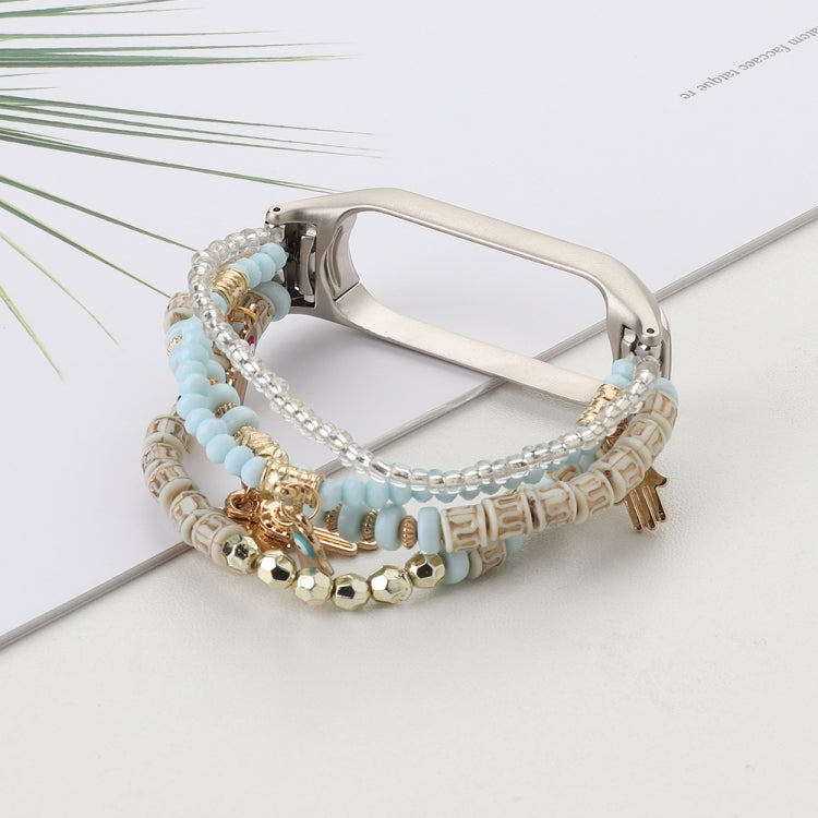 Para Xiaomi Mi Band 3 y 4 Mori Style Beade Bracelet Band (Blue Pink)