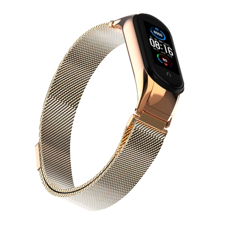 Para Xiaomi Mi Band 5 Milano Solid Color Magnetic Acero inoxidable Banda de acero (oro rosa)