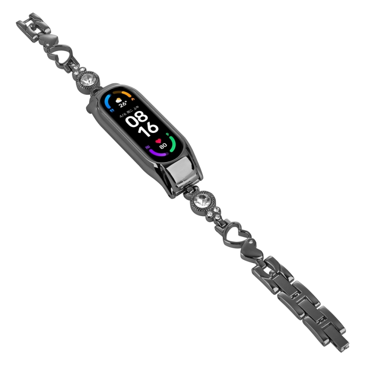 Correa de Reloj de Metal para Xiaomi Mi Band 6/5 con Diamantes Corazón a Corazón (Negro)