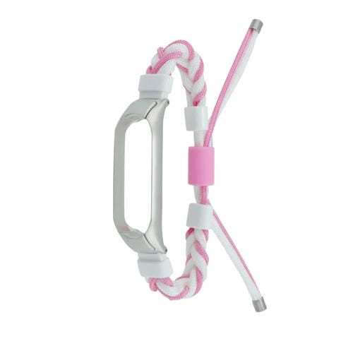 For Xiaomi Mi Band 7 Silicone Bean Braided Cable Nylon Watch Strap (White Pink)