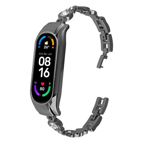 Correa de Reloj Metal para Xiaomi Mi Band 8 con Diamantes Corazón a Corazón (Negro)