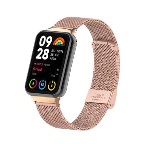 Correa de Reloj Metal para Xiaomi Mi Band 8 Pro con Hebilla de Malla Acero 18mm (Rojo Rosa)