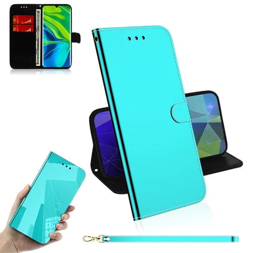 Para Xiaomi Mi Cc9 Pro / Note 10 / Note 10 Pro Estuche de Cuero Abatible Horizontal con Atracción Magnética Similar a Un Espejo con Cordón, Soporte de Soporte, Ranura para Tarjeta y Billetera (Verde Menta)