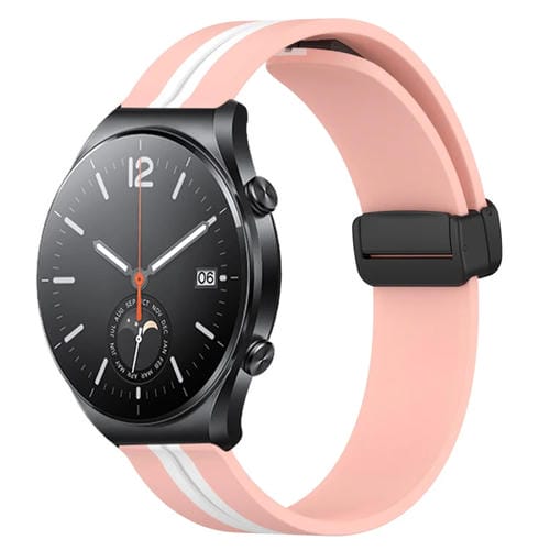 Correa de Reloj Xiaomi Mi Watch S1 22mm Silicona Cierre Magnético Plegable (Rosa + Blanco)