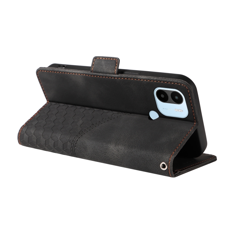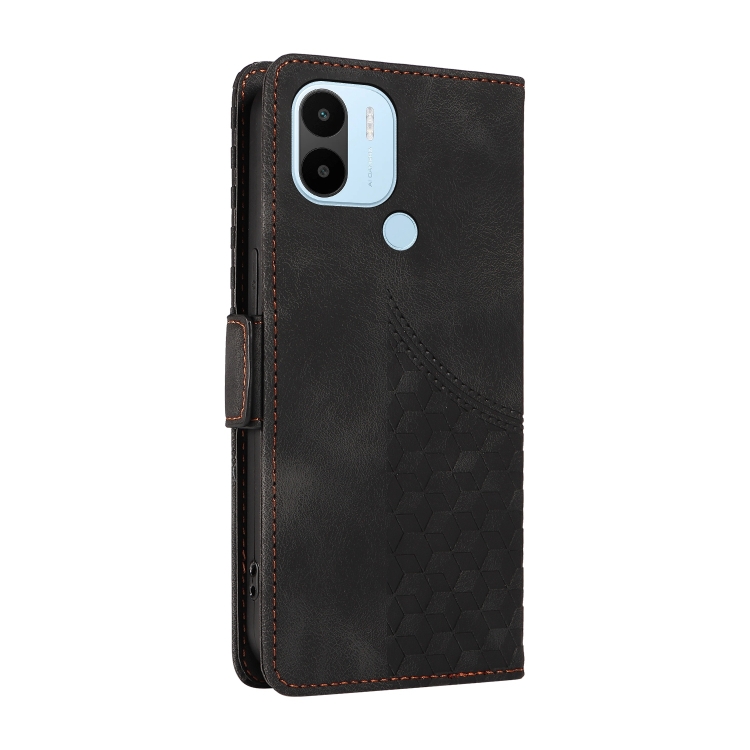 Para Xiaomi Poco C50 / C51 Funda para Teléfono de Cuero Estrellado con Rombos En Relieve (Negro)