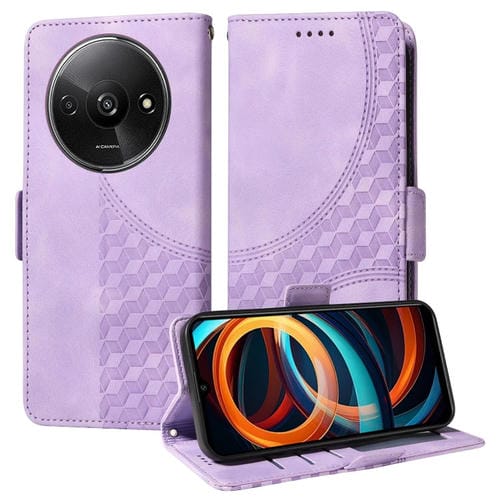 Para Xiaomi Poco C61 Funda para Teléfono de Cuero Estrellado con Rombos En Relieve (Púrpura)