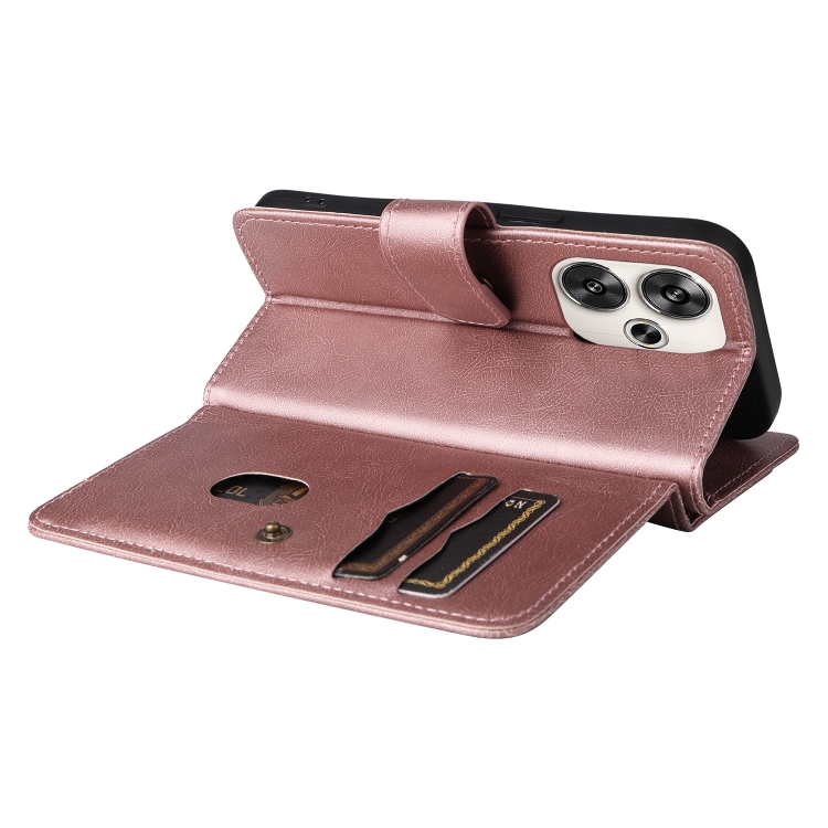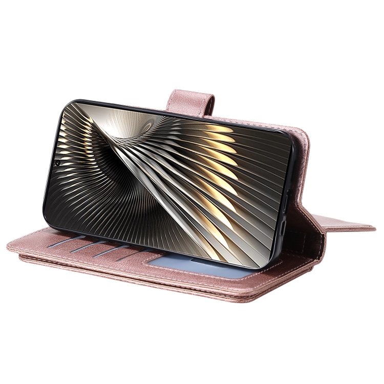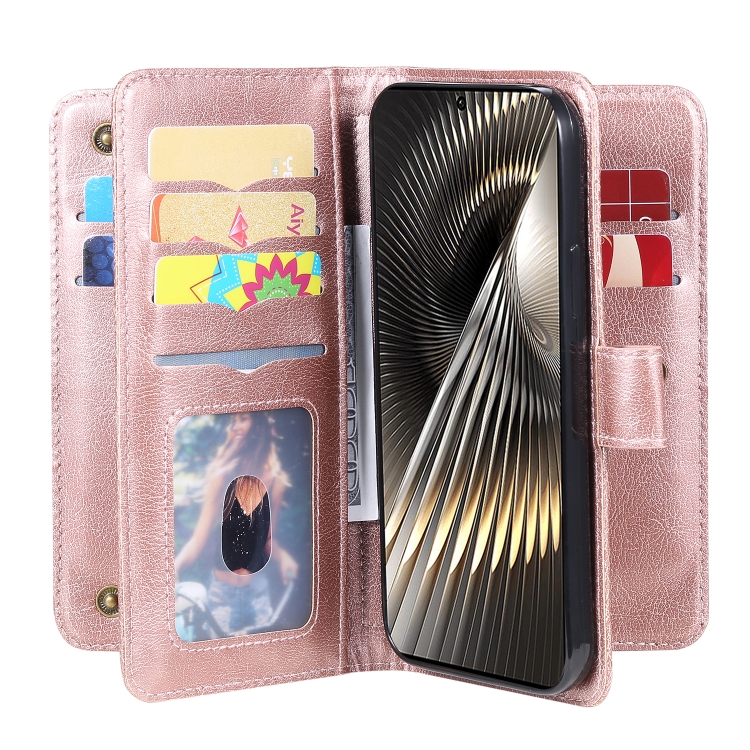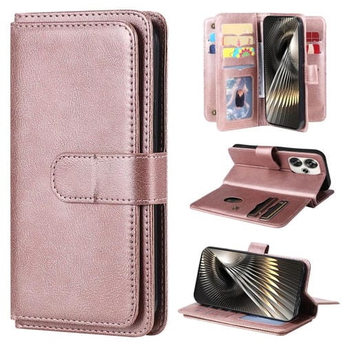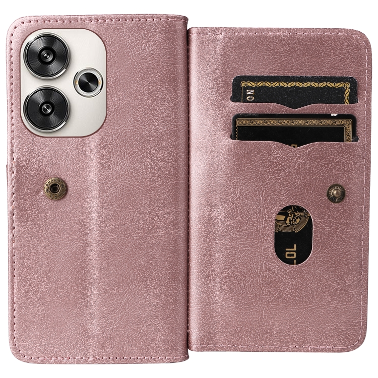 Para Xiaomi Poco F6 Cartera Multifunción 10 Ranuras para Tarjetas Funda de Cuero para Teléfono (Oro Rosa)