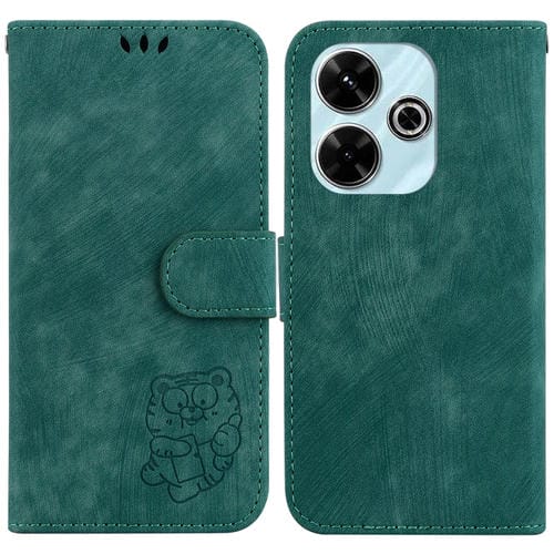 Para Xiaomi Poco M6 4G Little Tiger Funda de Cuero En Relieve para Teléfono (Verde)