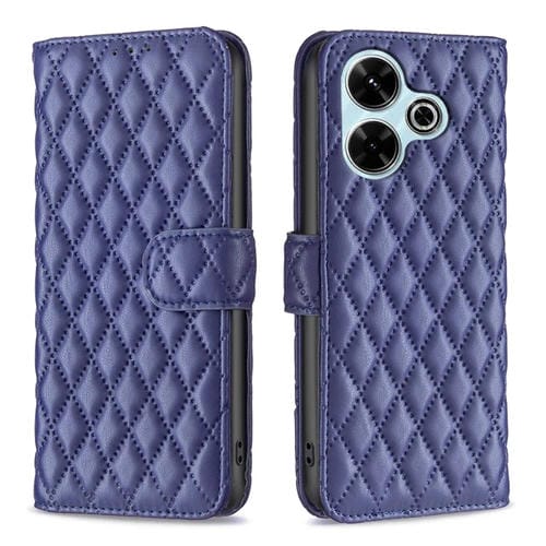 Para Xiaomi Poco M6 4G / Redmi 13 4G Diamond Lattice Wallet Funda de Cuero con Tapa para Teléfono (Azul)