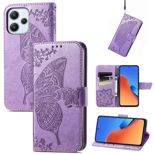 Para Xiaomi Redmi 12 Butterfly Love Flower Funda de Cuero con Tapa En Relieve para Teléfono (Púrpura Claro)