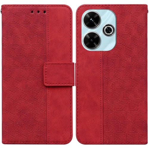 Para Xiaomi Redmi 13 4G Funda de Teléfono de Cuero con Relieve Geométrico (Rojo)