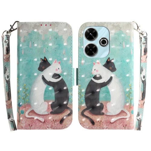 Para Xiaomi Redmi 13 4G Funda de Teléfono de Cuero con Tapa Horizontal de Color 3D (Gato Blanco Negro)