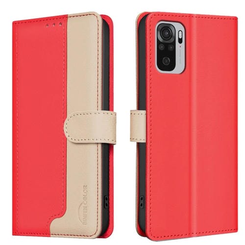 Para Xiaomi Redmi Note 10 4G / 10S Funda de Teléfono de Cuero Antirrobo Rfid a Juego de Colores (Rojo)
