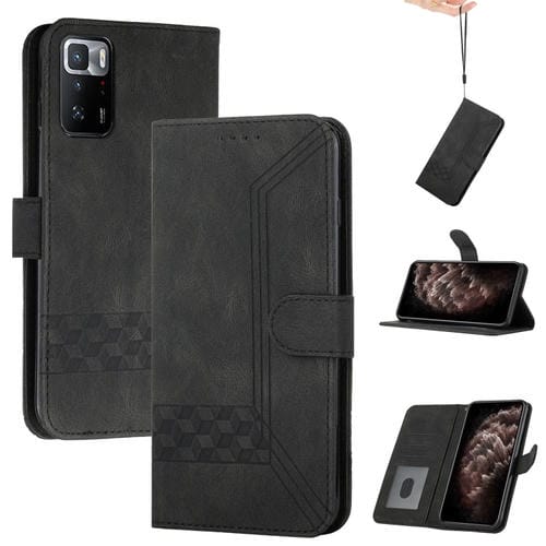 Para Xiaomi Redmi Note 10 Pro 5G Cubic Skin Sientir Funda de Cuero con Flip Cuero (Negro)