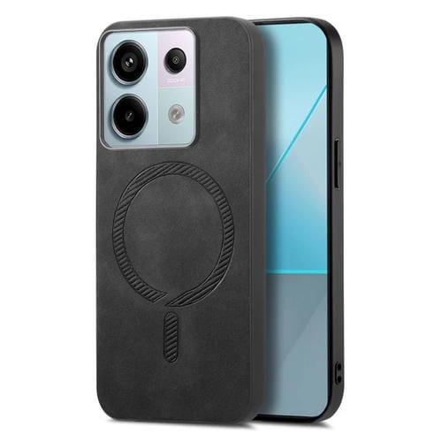 Para Xiaomi Redmi Note 13 Pro 5G Color Sólido Retro Magsafe Pu Funda para Teléfono con Contraportada (Negro)