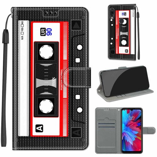 Para Xiaomi Redmi Note 7 Voltaje Dibujo de Color Magnético Cierre Magnético Flip Pu Funda de Cuero con Soporte y Ranuras para Tarjetas (C10 de Color Rojo Negro)