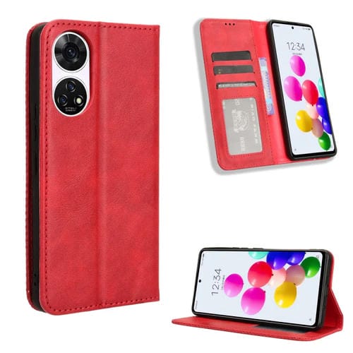 Funda para ZTE Anshin Family Cuero Textura Retro Hebilla Magnética (Rojo)