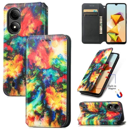 Funda de Cuero Magnética Caseneo para ZTE Blade A33S (Nube Colorida)